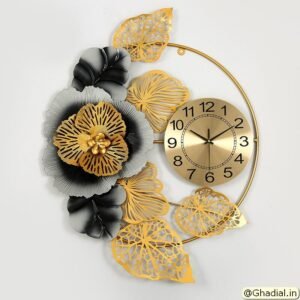 Black Gold Metal Flower Wall Clock